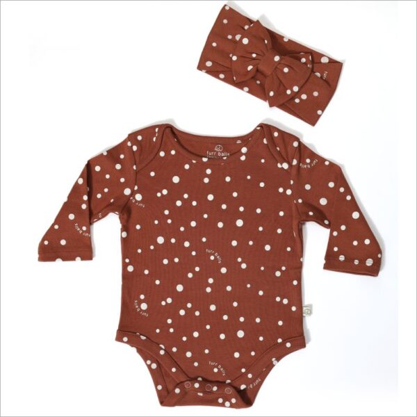 Baby Printed Polka Dotted full sleeves bodysuit with a bow headband