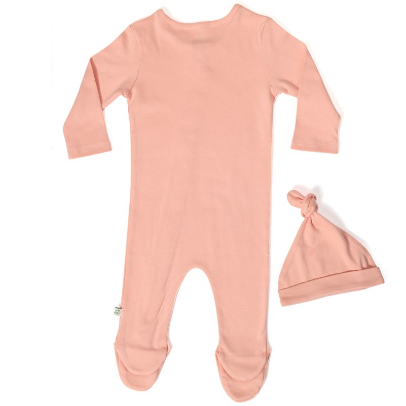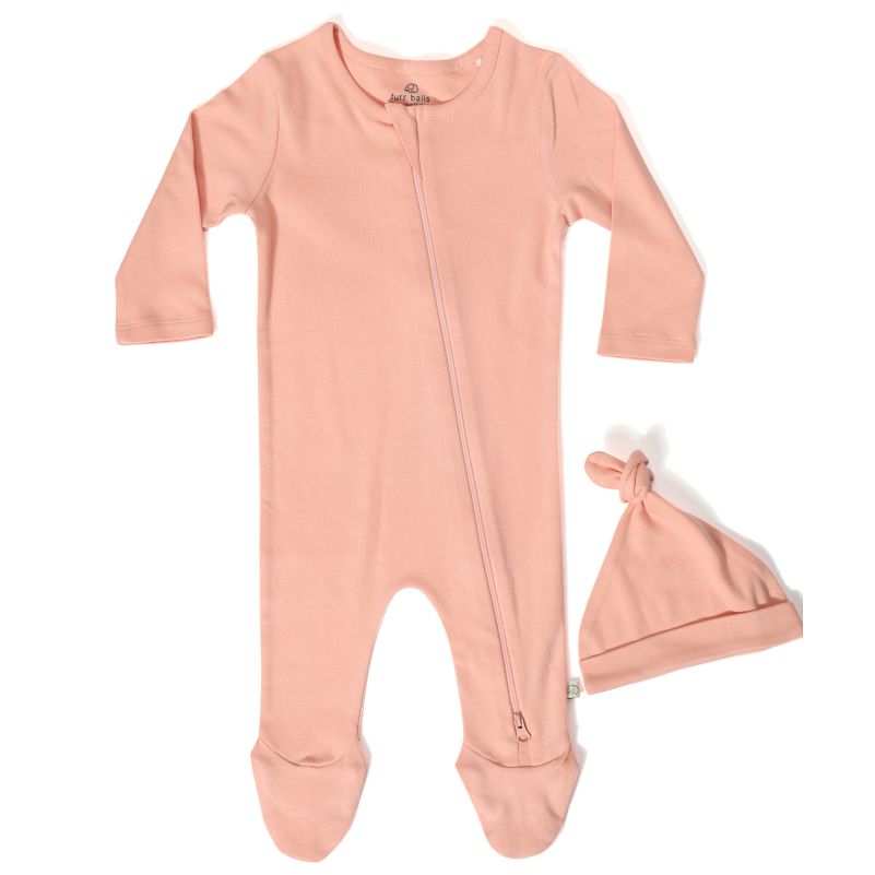 Long sleeves, 2 way zipper for quick diaper changes, A cozy organic cotton cap