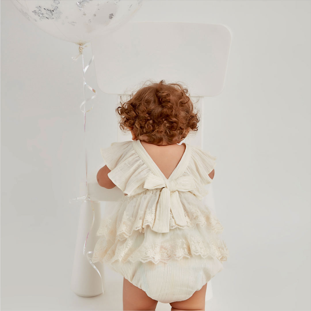 Introducing our gorgeously made vintage inspired Romper, perfect for your little’s special event. This romper combines both style and eco-consciousness, making it an appealing choice for your little one. Featuring delicate lace, made perfect with a cotton liner to ensure comfort. With its attractive frilly sleeves, your baby will look adorable and feel comfortable in every season. Dress your baby in the best while supporting sustainable, natural materials – because they deserve nothing but the finest.